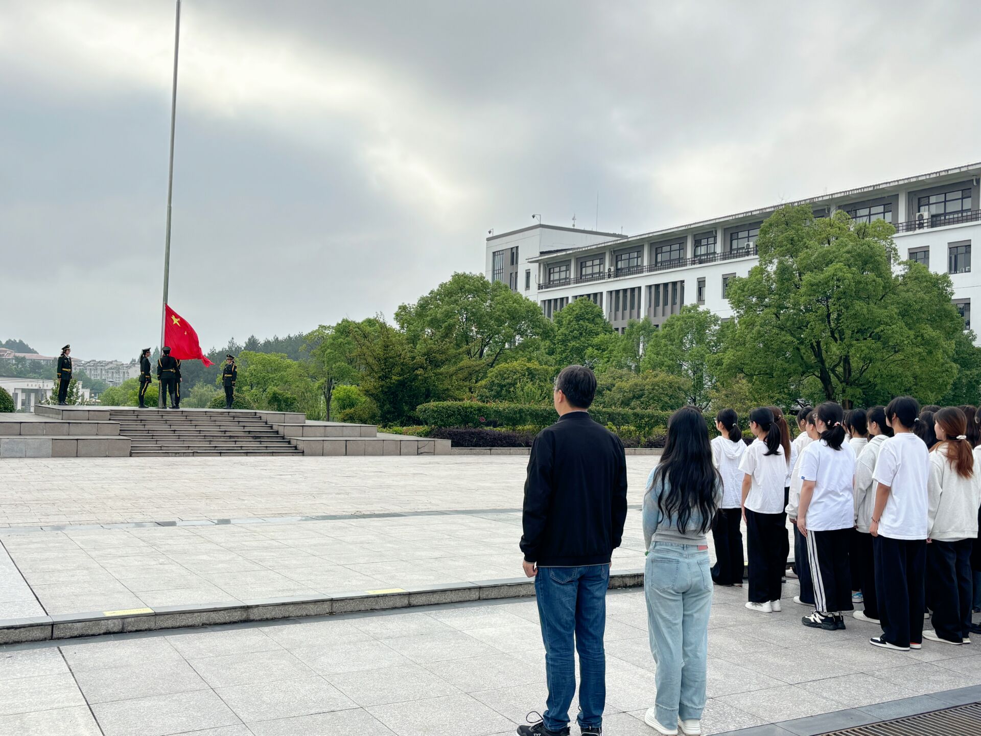 今年5月12日是我国第16个全国防灾减灾日,为增强学生防灾减灾安全意识,提高应急自救能力,5月13日清晨,太阳成集团tyc7111在率水校区徽文化广场举行升国旗仪式暨“防震减灾,筑牢安全防线”主题教育活动,院党委副书记万志兵、专职辅导员王宇、2023级食品科学与工程专业全体学生参加本次升旗仪式。