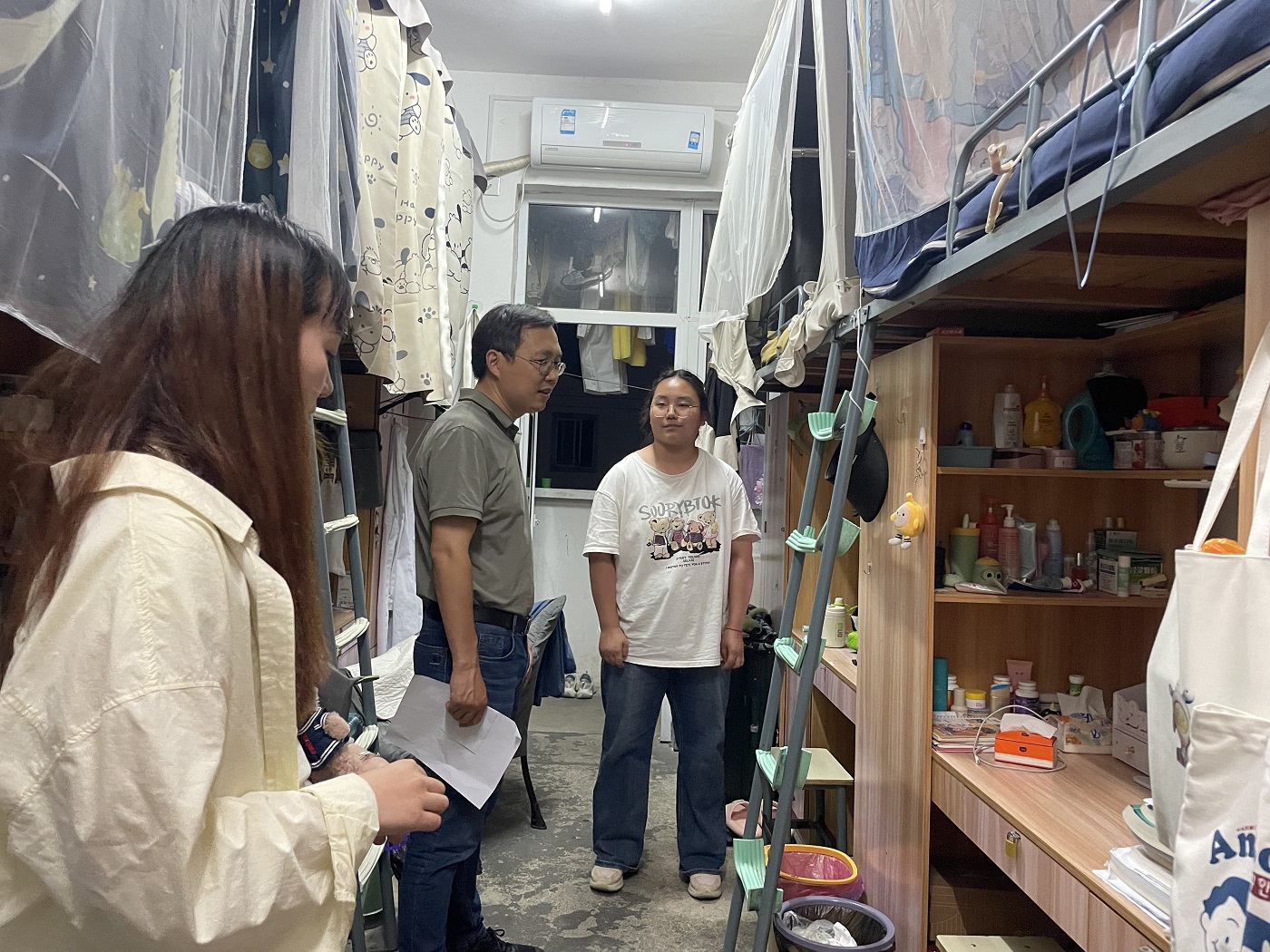 在宿舍走访过程中,万志兵副书记也针对学生生活状况、学习状况、心理状态,与同学们亲切交谈,主动倾听他们的心声和需求,对同学们提出的意见和问题进行耐心解答。正值期末考试即将到来,万志兵副书记鼓励同学们认真做好学业规划,认真备考,诚信考试。