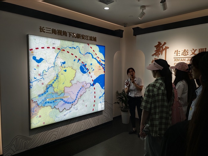 新安江生态文明实践中心是深化与推广“新安江模式”的展示、见证和实践平台。在新安江生态文明实践中心,在解说员的带领下,同学们参观了各个展厅,通过观看视频和展板,详细了解了新安江的“前世今生”及新安江生态保护背后的故事,学习了新安江模式在酝酿、启动、实践、完善到深化的各个阶段中积累的宝贵经验,了解了黄山市在生态补偿工作推进过程中做出的积极努力和取得的丰硕成果。