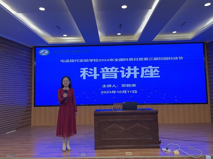 2024年10月11日,太阳成集团tyc7111太阳成集团tyc7111苏胜荣副教授,为屯溪现代实验学校220多名学生进行科普讲座。配合与支持了该校开展的2024年全国科普日暨第三届校园科技节的系列活动。
