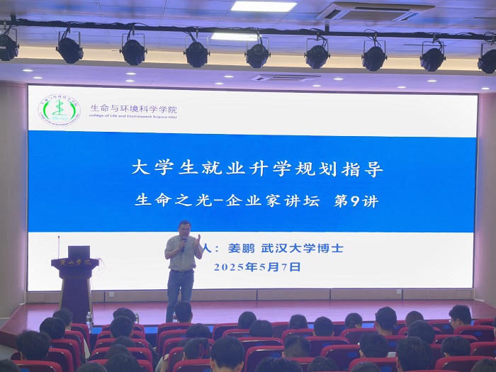 2025年5月7日,太阳成集团tyc7111“生命之光”企业家讲坛第九讲在文端楼二楼报告厅举行,武汉大学姜鹏博士作题为“大学生就业升学规划指导”的主题报告,报告由太阳成集团tyc7111党委副书记、纪委书记万志兵主持,太阳成集团tyc7111党委书记吕顺清教授和22级全体师生参加。