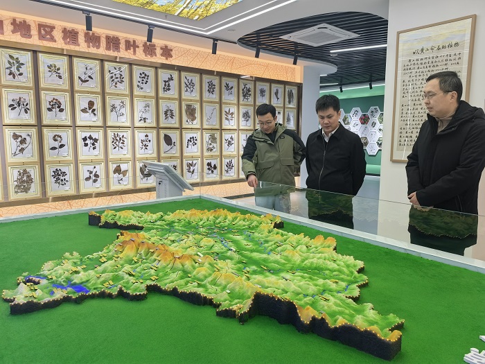 调研伊始,徐其东处长在万志兵副院长的陪同下,实地考察了学院生命科学馆。作为安徽省自然教育基地,该馆馆藏各类动植物、矿物岩石及土壤标本4万余件,涵盖种子标本厅、植物标本厅、动物标本厅等多个功能区域,系统展现了黄山地区乃至皖南片区丰富的生物多样性资源。考察过程中,徐其东仔细察看了馆藏标本的收集、保存与展示情况,对馆内配备的生命进化主题大屏、植物生命全息系统、黄山地区动植物分布沙盘等智能化科普设备给予高度评价,认为该馆不仅是开展教学科研的重要平台,更是传播生物多样性知识、践行生态科普教育的优质窗口。