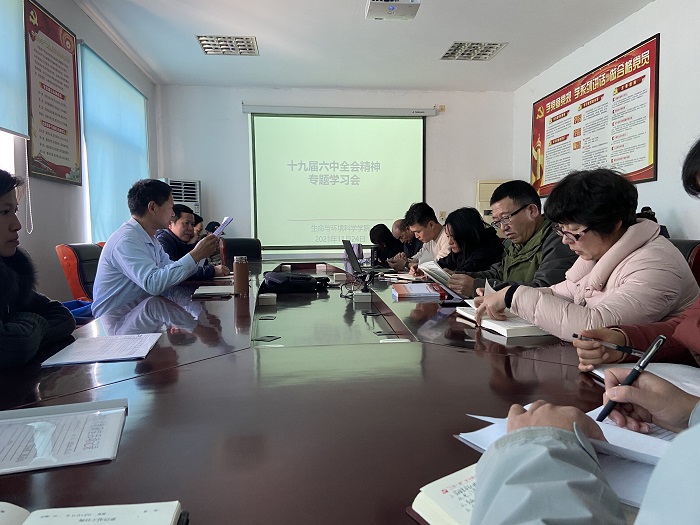 11月24日,生环学院于天都园林三楼会议室召开政治理论专题学习会,传达学习贯彻党的十九届六中全会精神。院党委书记吕顺清、院长佘新松、各党支部书记及全体教师参加会议。会议由吕顺清主持。