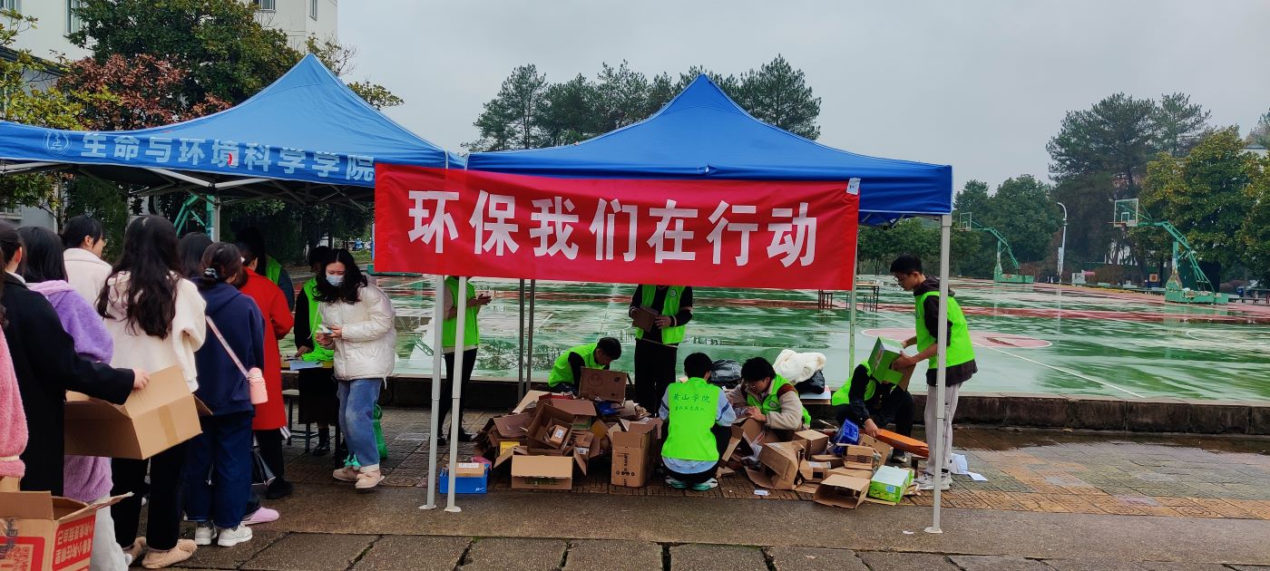 为积极响国家“金山银山,不如绿水青山”的号召,20生技一班于11月21日上午十点至下午五点,在率水校区一食堂对面成功举办“环保我们在行动”回收纸箱活动。此次活动共有300名同学参与。