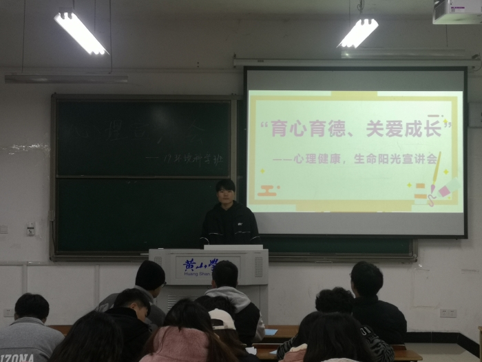 为使心理健康教育宣讲走进班级,19环科班于11月29日下午5点20,在文渊楼1103教室举办了以“育心育德、关爱成长”为主题的班会,该班全体81名同学参与了此次班会。