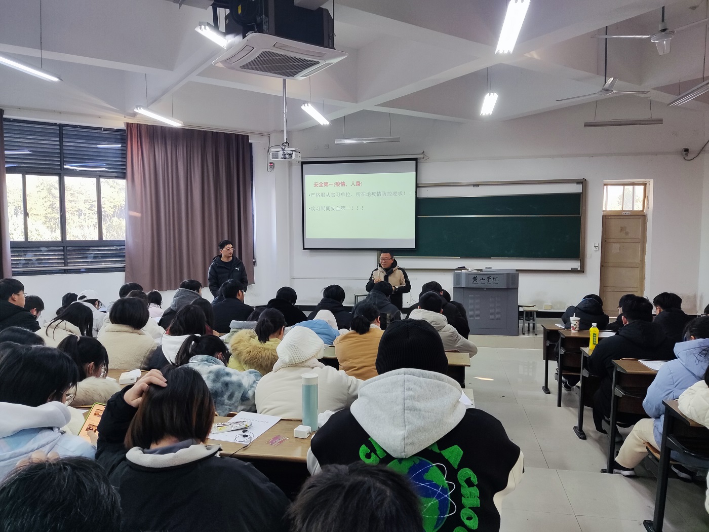 最后,徐良玉提醒全体同学做好离校台账、离校安全承诺书、钉钉离黄申请等离校手续;并对就业选择、三方协议、网签等就业事宜作了介绍。