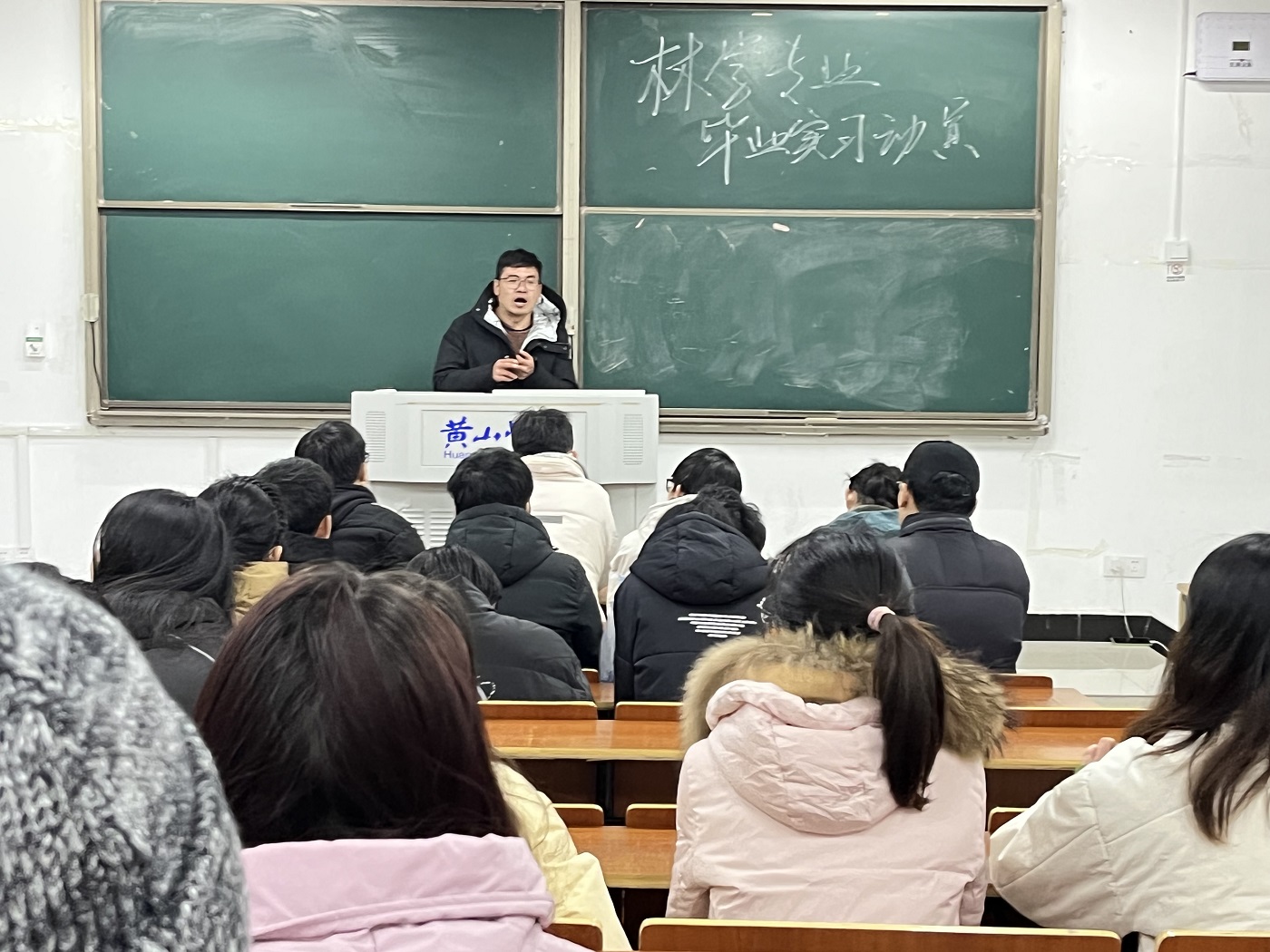 为做好毕业班离校工作安排,做好毕业班学生实习工作布置,12月27日,18生物技术班、18生物科学班、18林学班于文渊楼1206召开离校班会暨实习动员大会。就业指导中心主任陈向阳、生技教研室主任胡晓倩、生科教研室主任李伟、林学教研室主任郑磊、辅导员徐良玉及全体同学参加会议。