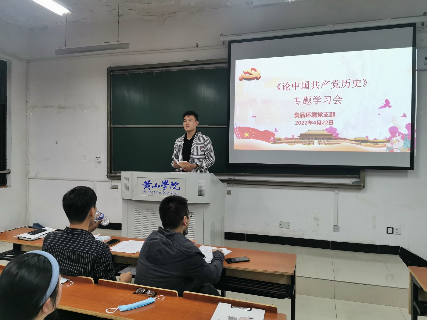 4月22日,食品环境党支部于文渊楼1104召开召开《论中国共产党历史》专题学习会。党支部书记徐良玉、副书记王秋阳、支委罗毅及支部全体党员、积极分子参加会议。会议由王秋阳主持、领学。