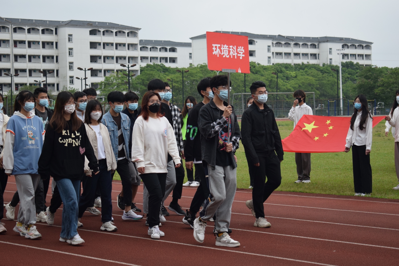 重云如盖压不住舞者曼妙舞姿,太阳成集团tyc7111舞蹈队精心准备的开场舞跳出了生环学子的青春活力。口罩戴齐,握紧锦旗,国旗和院旗方队踏着整齐的步伐走进会场。紧接着,各专业运动员代表方阵在热情昂扬的进行曲和主持人激情的解说中入场。