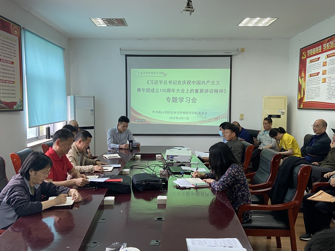 5月11日下午,生环学院于天都园林三楼会议室召开全体教职工政治理论学习会议,专题学习《习近平总书记在庆祝中国共产主义青年团成立100周年大会上的重要讲话精神》。会议由党委书记吕顺清主持。