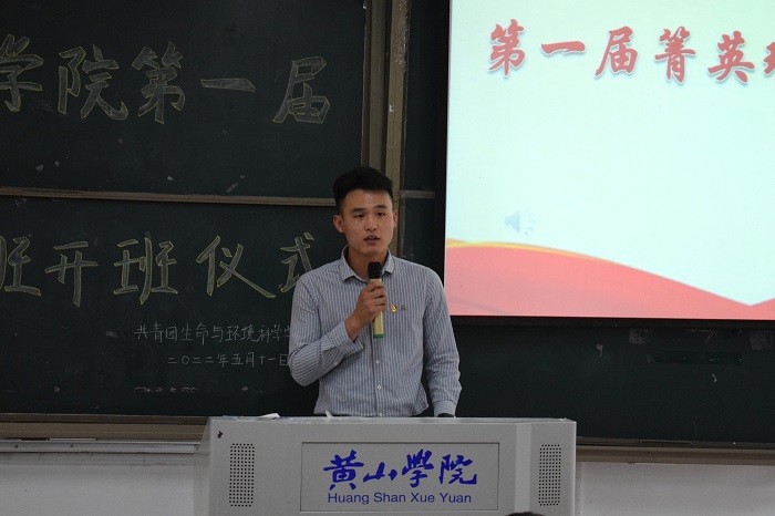 仪式开始,全体成员起立奏唱国歌。随后,王秋阳发表讲话,他首先对第一届菁英班的顺利开班表示热烈的祝贺,同时对参加培训的同学表示热烈欢迎。并激励广大共青团员要心有所畏、言有所戒、行有所止,不断锤炼意志力、坚忍力、自制力,做一个一心为公、一身正气、一尘不染的人。