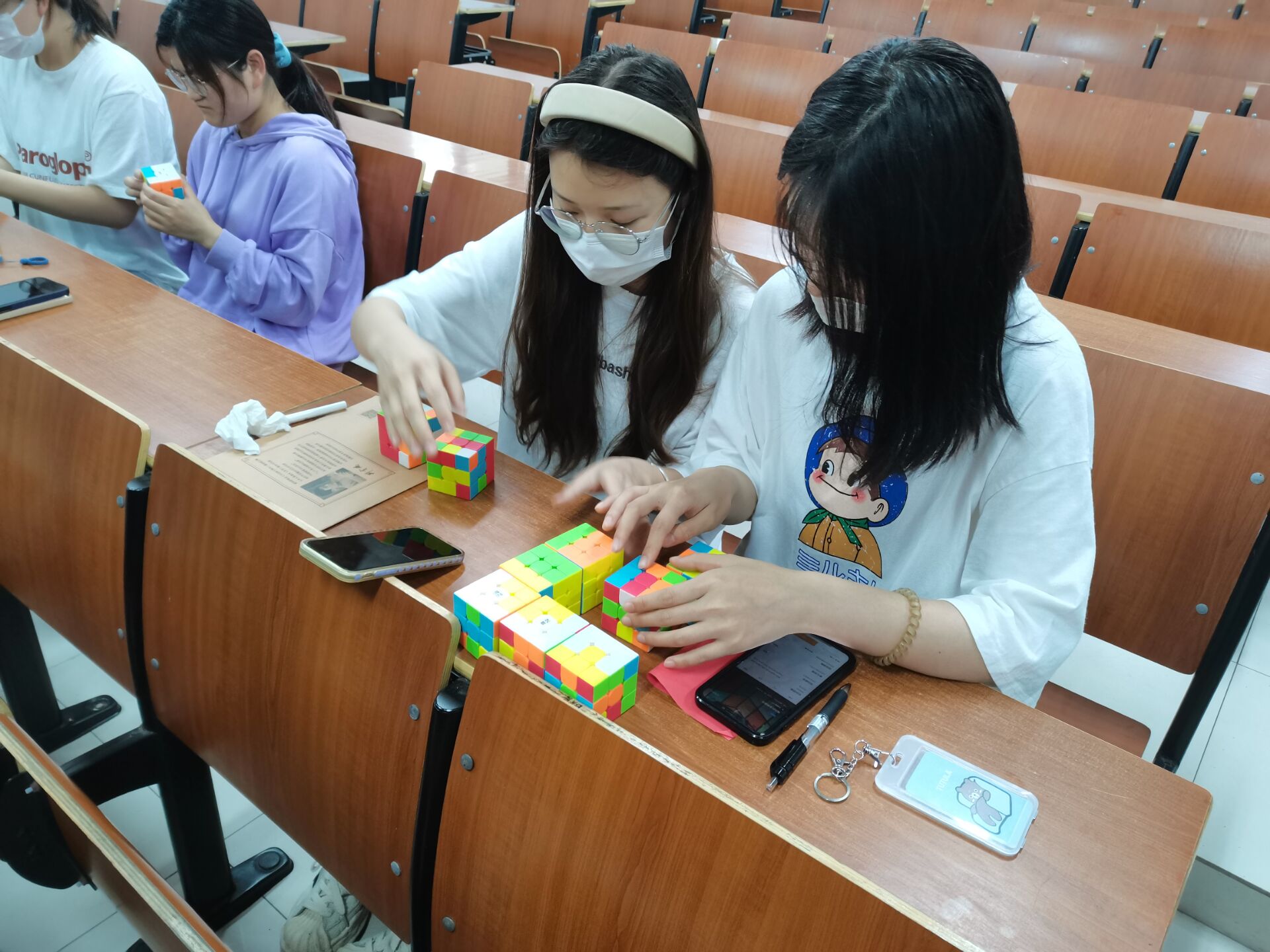 临近期末考试,本次活动增加了同学们对魔方的兴趣,并让同学们减轻考试前焦虑,让同学们做到劳逸结合。