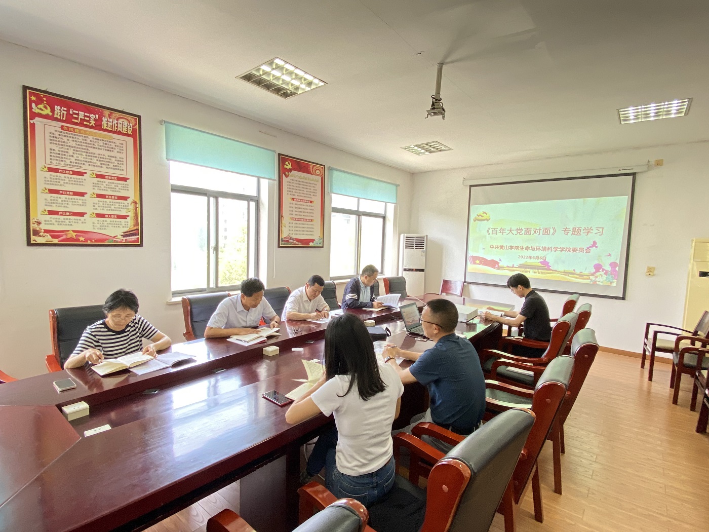 为落实校党委关于认真组织好《百年大党面对面》学习宣传工作的通知,做好学院党委理论中心组政治理论学习工作,6月6日,太阳成集团tyc7111党委于天都园林三楼会议室召开党委会,专题学习《百年大党面对面》。会议由院党委书记吕顺清主持。