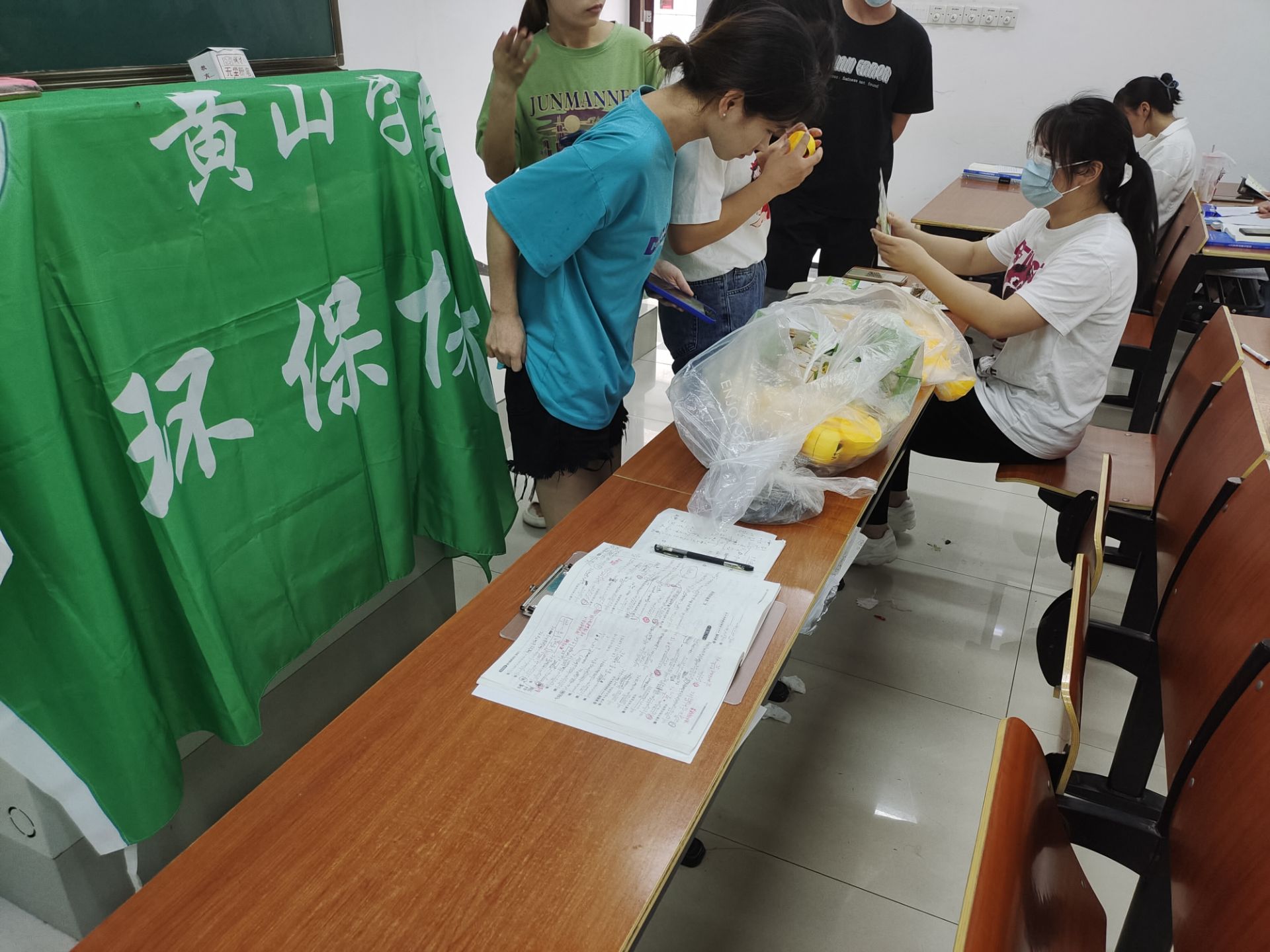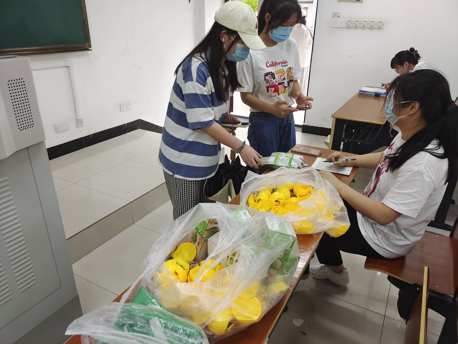 活动伊始,因受到疫情的影响,线下活动不得超过60人,便分为三个批次进行。参与同学到达指定教室领取植物种子并进行签到。