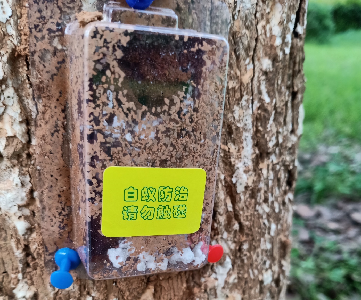 伴着梅雨季节的到来,白蚁逐渐出现在校园和当地社区房屋建筑内,白蚁危害区域非常广泛,无论是房屋建筑、水利电力、文物古建、风景园林,还是农林果木,都已成为白蚁危害的目标。6月9日—6月17日,团队成员依次前往润一生态园、黟县宏村、校园及周边小区和呈坎等地区,对周边树木和房屋建筑进行白蚁侵害调查,开展知识科普,通过以饵剂投放的方法,用树干投放和地面投放两种方式对白蚁进行防治。