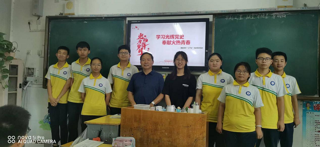 团队成员分别赴江西省吉安市永丰县恩江镇崇文广场、阜阳市第十六中学、阜阳市二十一中学等地进行党史宣讲。团队成员在各自乡镇开展党史宣讲时,深入到户,通过详细丰富的史实、生动鲜活的故事,为家乡人民讲解中国共产党的逐梦之路、伟大成就和经验启示等,带领大家重温中国共产党走过的峥嵘岁月和辉煌历程。