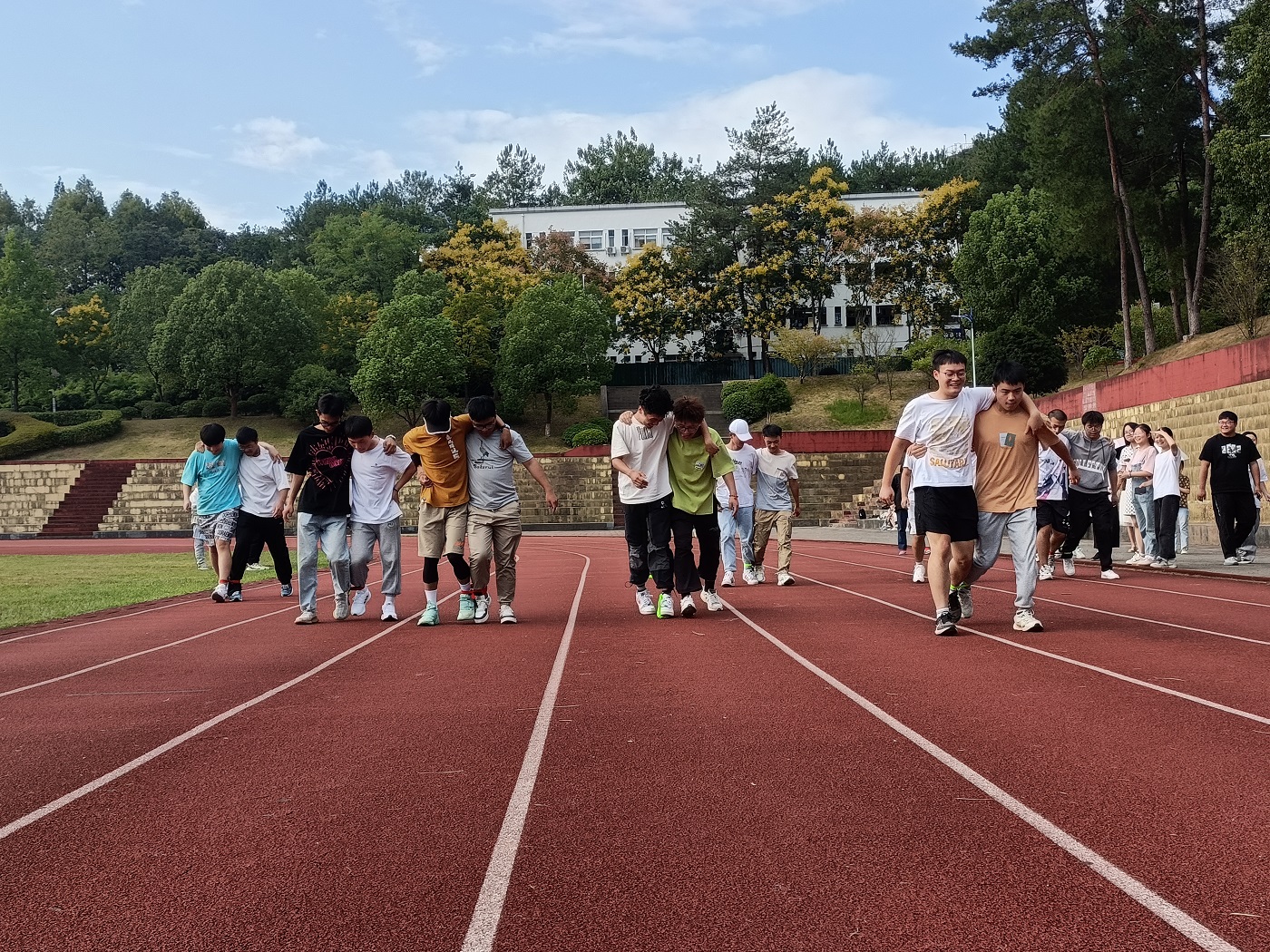 活动中,同学们都洋溢着积极昂扬的姿态,现场氛围浓厚。本次活动分为8个部分进行,在“人生絮语,你听我唠”和“诉说心扉,互答疑难”环节,同学们敞开心扉互相交流;在“留下记忆,温暖常在”环节,各个宿舍手绘“全家福”,展现了良好的宿舍凝聚力,丰富了寝室文化;在“增强体质,你我同行”环节,各个寝室之间的“两人三足”运动比赛,更将此次活动推向了高潮。在其他环节中,都热情高涨,积极参与,场中充满了欢声笑语。