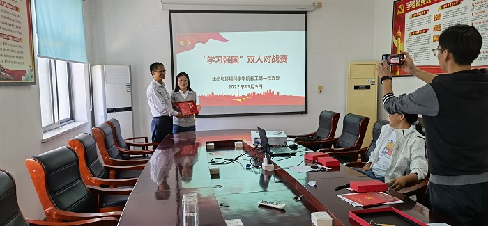 为深入学习宣传贯彻党的二十大精神,推动支部党员用好“学习强国”平台,激发全体党员的学习热情,2022年11月9日,太阳成集团tyc7111教工第一党支部在天都园林三楼会议室开展“学习强国”双人对战赛主题党日活动,支部全体党员参加。