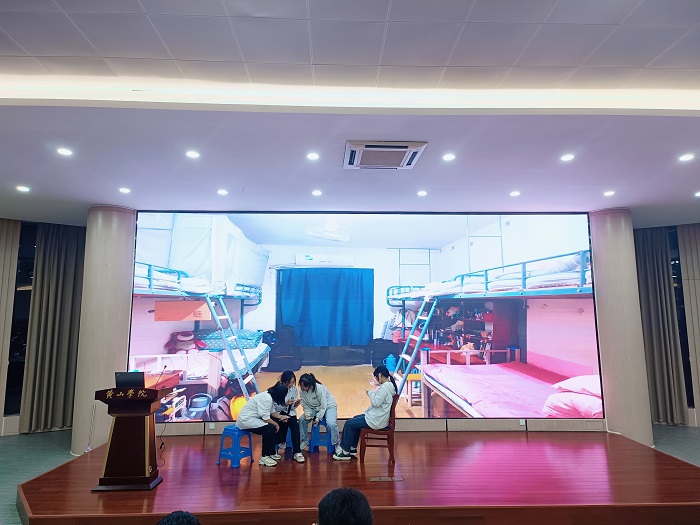 经过几天初赛的选拔,有八间寝室入围决赛,决赛从寝室展示、才艺展示和游戏互动三个环节进行评选。各个寝室用PPT和精彩的视频介绍了寝室日常生活和寝室特色。在才艺展示中,各个寝室带来了唱歌、舞蹈、小品、书画等出色的节目,赢得了观众的喜爱。在游戏互动中,各个寝室团结一心,默契十足。