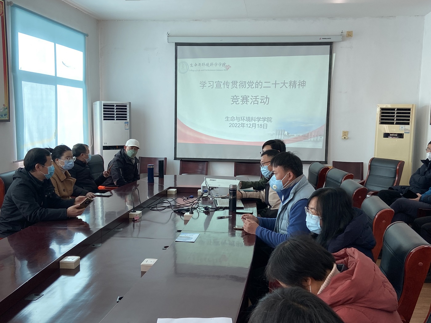 为全面落实学习宣传贯彻党的二十大精神工作,12月18日上午10点,生环学院于天都园林三楼会议室开展了“学习宣传贯彻党的二十大精神”竞赛活动,用知识竞赛营造学习氛围、检验学习成效,在全院上下形成比学习、比作风、促发展的良好环境。学院领导班子及全体教职工参加活动。