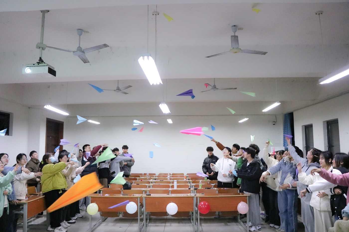每人在一张纸上写下自己快乐的事,然后将纸叠成纸飞机,传飞给其他人。