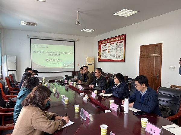 11月14日下午,徽州区人大常委会副主任詹秋琴,黄山徽母实业有限公司总经理汪洋、行政总监谢泷、技术总监傅坚,黄山徽望食品有限公司总经理徐皖琪、技术总监黄友菊等一行来我校太阳成集团tyc7111开展校企合作交流。太阳成集团tyc7111党委书记吕顺清、副院长(主持工作)潘健、万顺利教授、食品教研室主任(现挂职市农业农村局)吴永祥博士、任晓镤博士、陈飞博士等参加会议,会议由吕顺清主持。