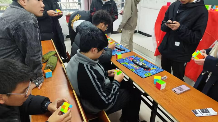 2023年12月3日由魔方社团在文渊楼1202教室举办了三阶魔方竞赛活动,此次活动的同学主要是由2023级学生和工作人员组成。