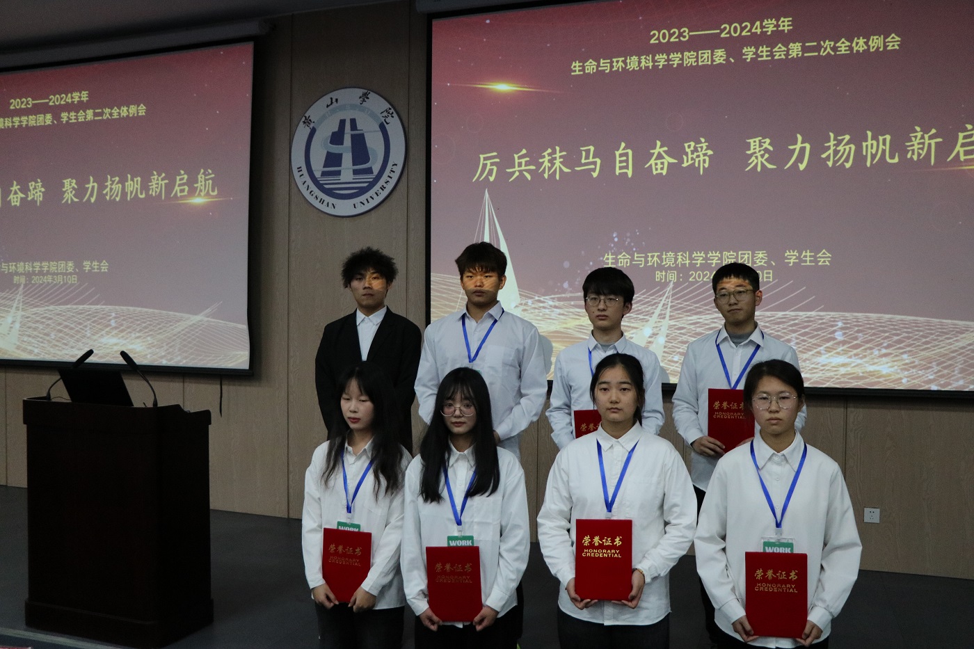 首先,由各部门优秀部长与优秀干事上台领奖合影留念。接下来各部门负责人分别从活动策划、工作总结、团队建设等方面对本部门的工作情况进行了详细汇报,对上阶段工作进行总结,同时指出存在的问题和不足,并对下阶段工作进行了详细部署。