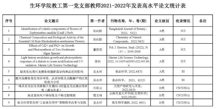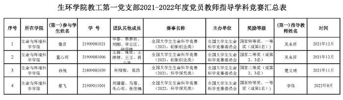 党支部通过党建引领不断强化教师队伍的凝聚力,有效促进教学科研的提升和学科专业取得新发展。在培养方案修订、实践教学基地建设、科研平台申报与建设、生物与医药专业硕士学位培育点的创建等方面,引领、动员党员教师勇挑重担,各尽其材。据不完全统计,2021-2022年间支部成员获批省部级科研项目5项,横向项目4项,发表高水平论文9篇,专著1本,授权专利11项。支部在课程与教学、人才培养质量、科研项目、科研成果和团队平台建设等方面走在前列。