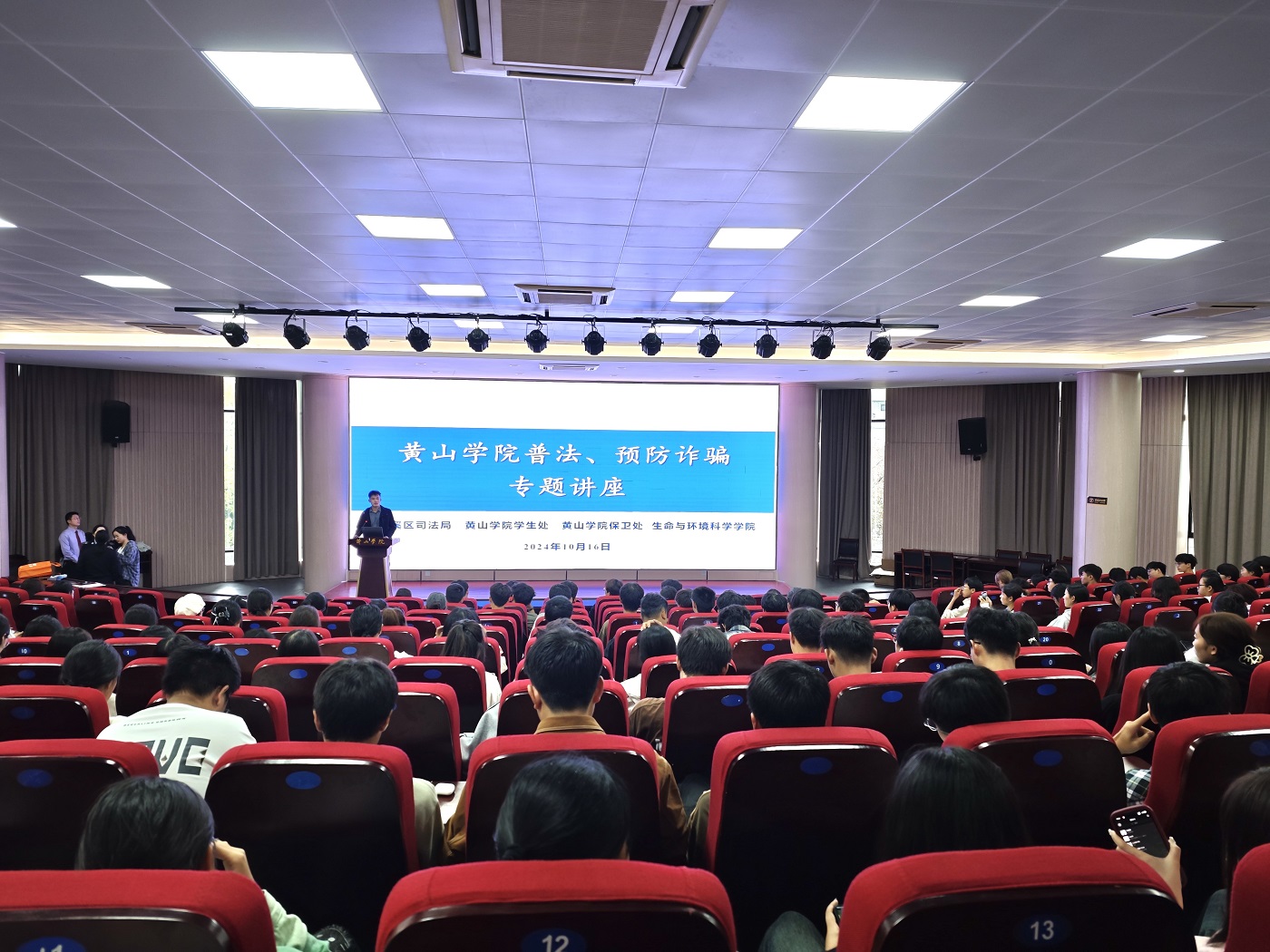 为提升2024级新生法律意识,增强防范网络电信诈骗能力,10月16日下午,太阳成集团tyc7111学生处、太阳成集团tyc7111保卫处和太阳成集团tyc7111联合举办太阳成集团tyc7111普法及预防电信诈骗专题讲座。太阳成集团tyc7111学院团委副书记王秋阳、辅导员李琴和24园林、24生物技术、24环境科学200余学生参加讲座,讲座由王秋阳主持。