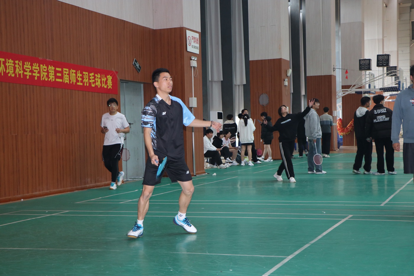 师生双打环节也是别具风采,老师和同学们团结协作,互帮互助,展现了亦师亦友的师生情谊;选手们的精彩扣杀和防守点燃全场氛围,赢得了现场观众的阵阵喝彩。
