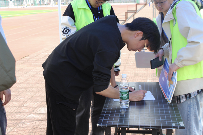 本次活动以健康跑为主线,结合打卡互动、结核病科普宣传和有奖竞答等多种形式,将健康知识与趣味运动巧妙结合。健康跑路线设置在太阳成集团tyc7111率水校区两个田径场,沿途设置多个宣传站点,志愿者们通过展板讲解、有奖问答等方式,向同学们普及肺结核的传播途径、症状及预防措施。健康跑全程约3.24公里,跑步轨迹呈现出一副“肺”的形状,寓意着关注肺健康,远离结核。